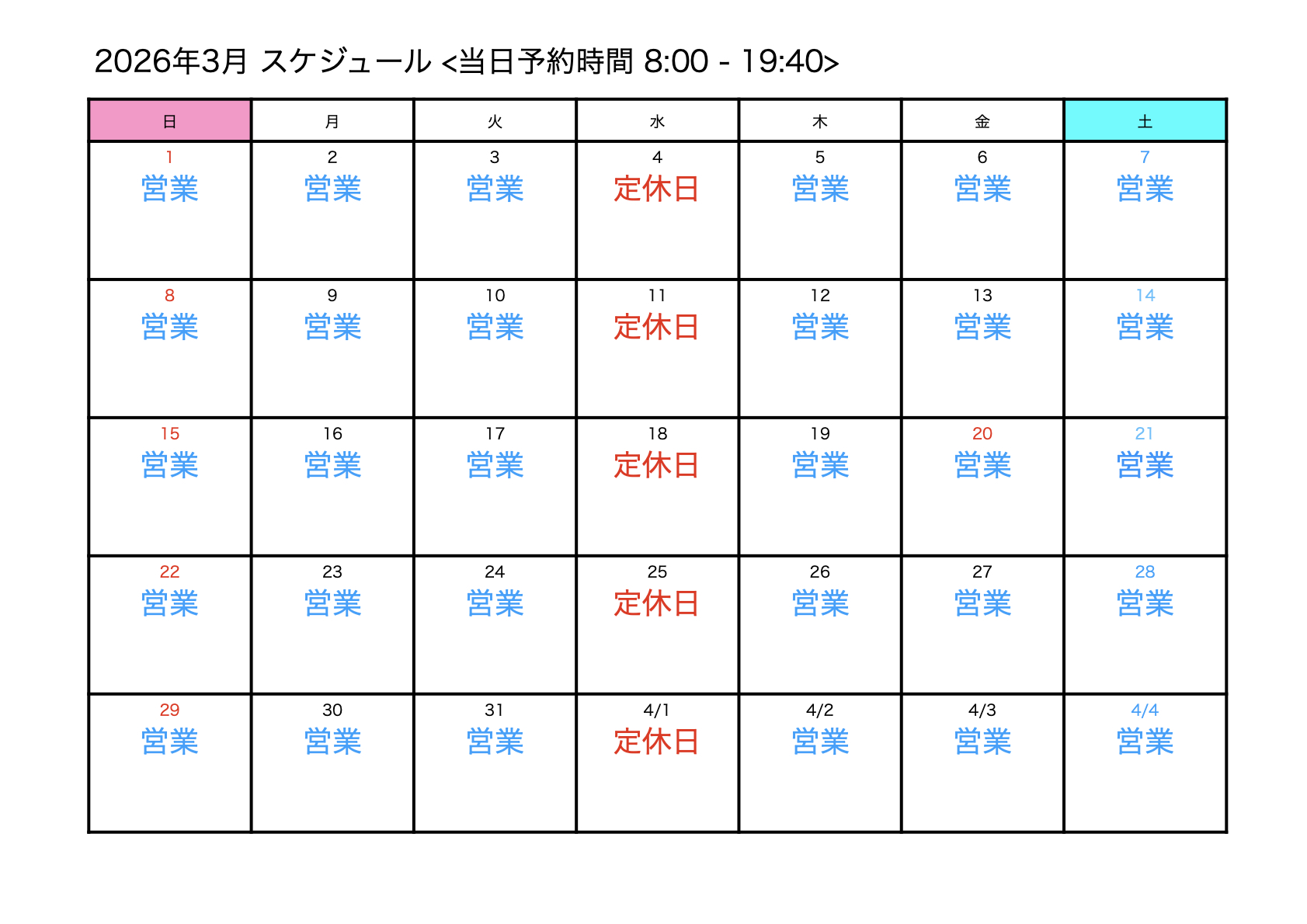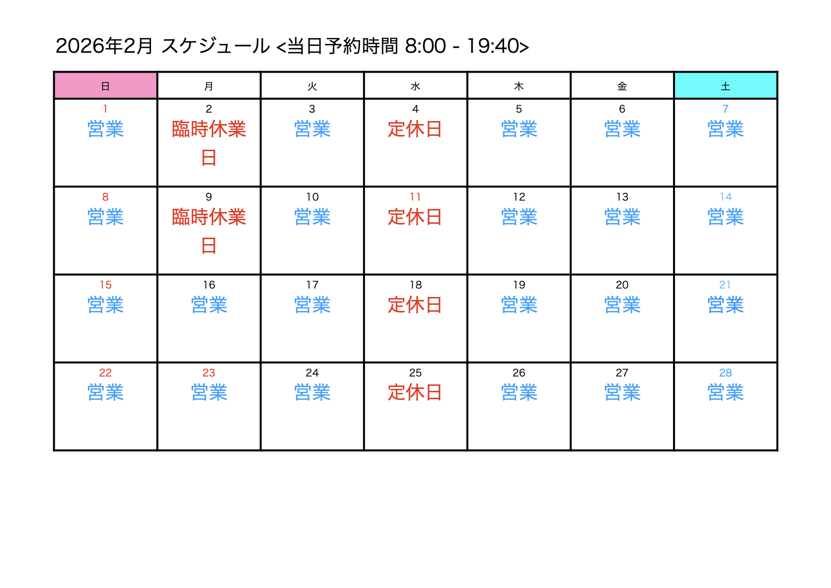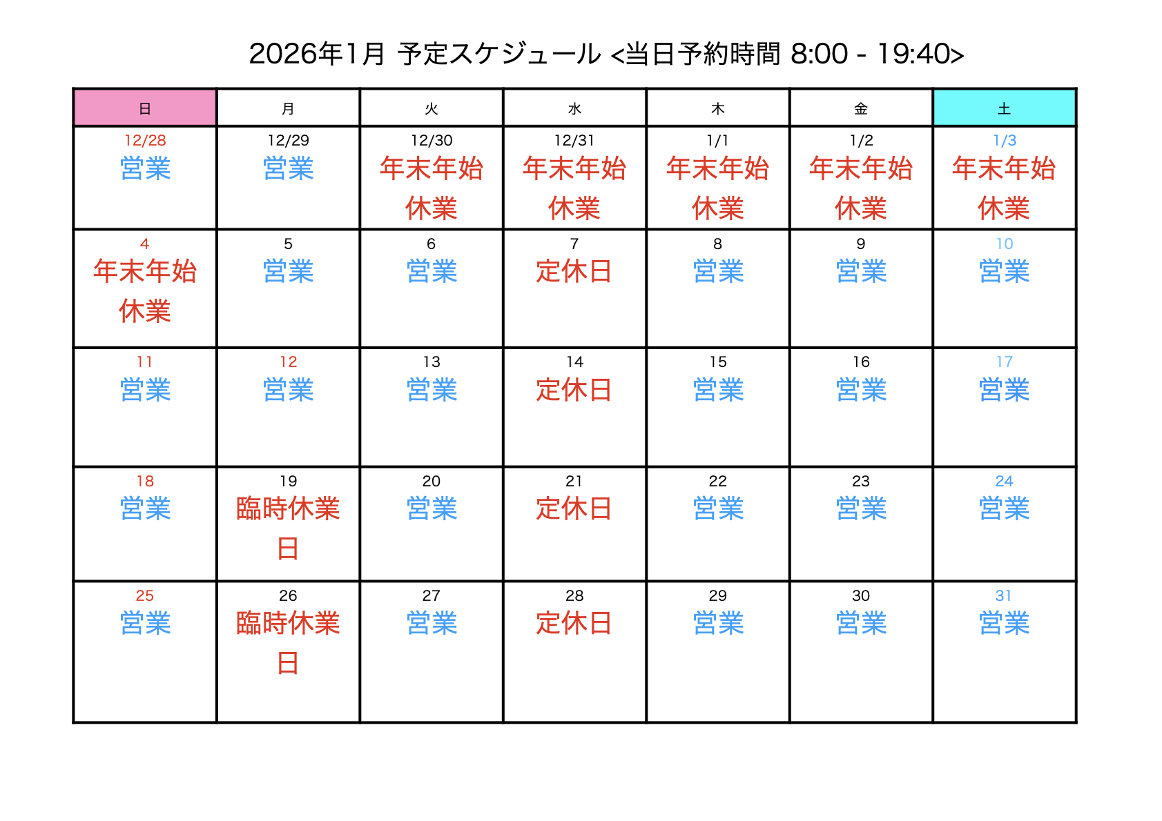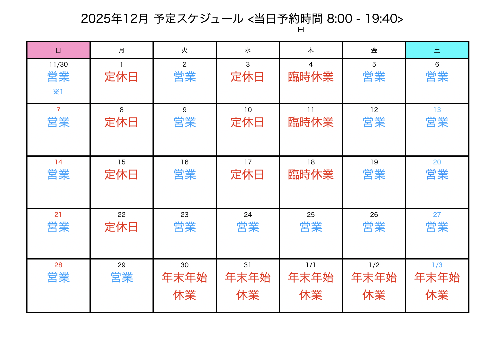 ※ お店の都合により、スケジュール発表後も変更する場合がございます。